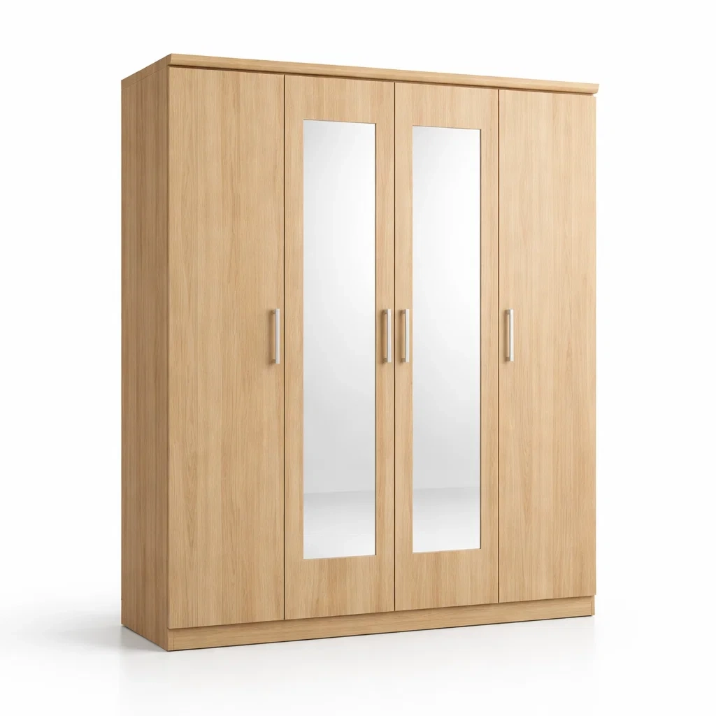 Armoire en bois chêne naturel à quatre portes avec miroirs