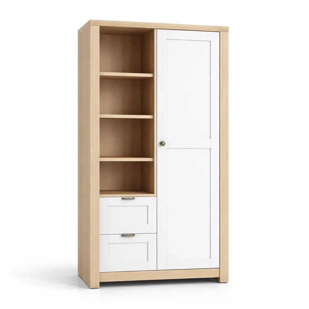 Armoire en bois MDF chêne clair avec deux portes et trois tiroirs