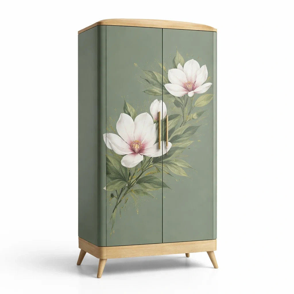 Armoire en bois et MDF avec motif floral à deux portes